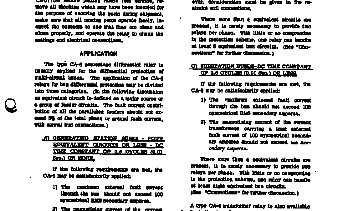 I.L. 41-337.1D TYPE CA-6 PERCENTAGE DIFFERENTIAL RELAY FOR BUS AND TRANSFORMER PROTECTION by ECP Manuals | Jun 30, 2017 | 0 comments Submit a Comment Cancel replyYour email address will not be published. Required fields are marked *Comment * Name * Email * Website Save my name, email, and website in this browser for the next time I comment. Δ