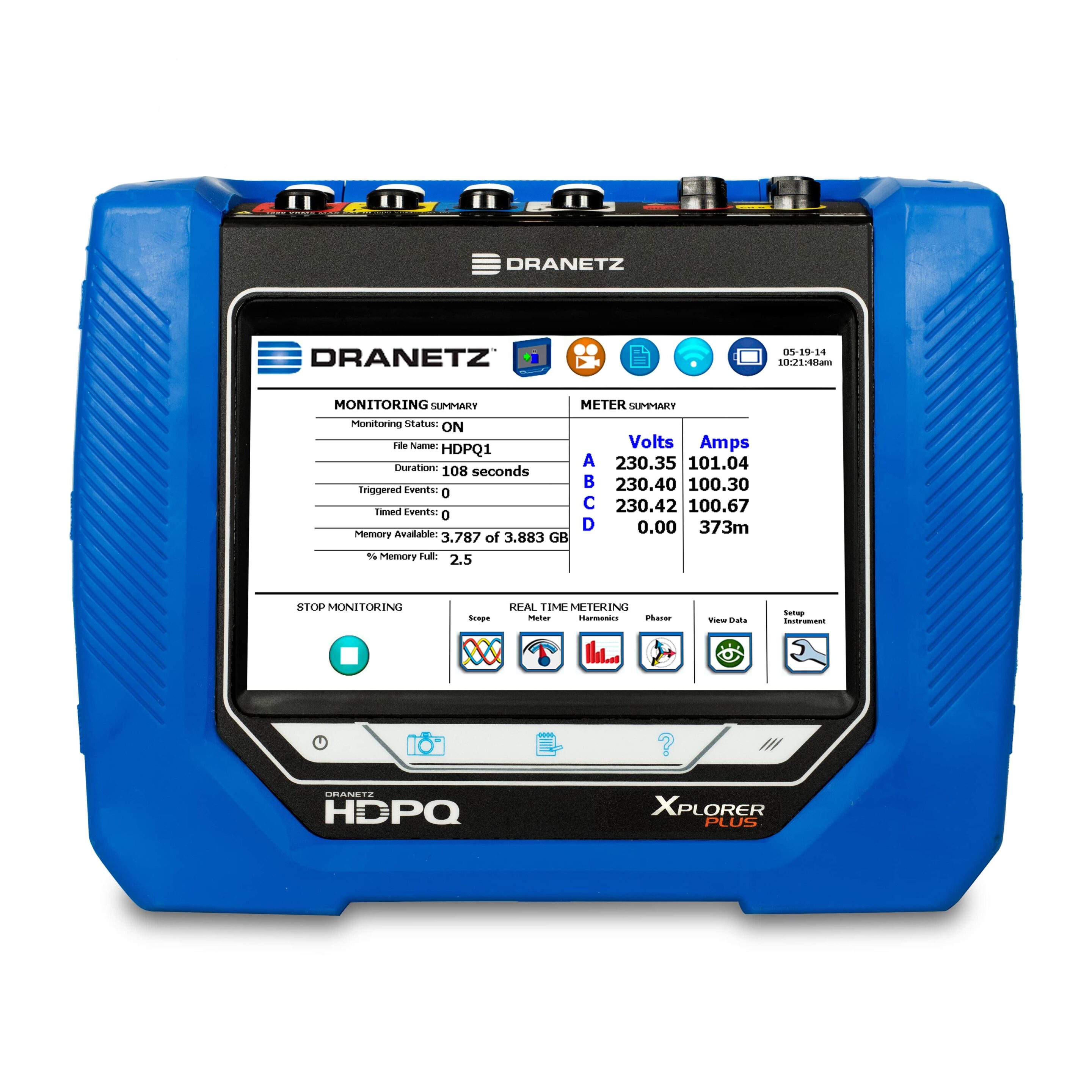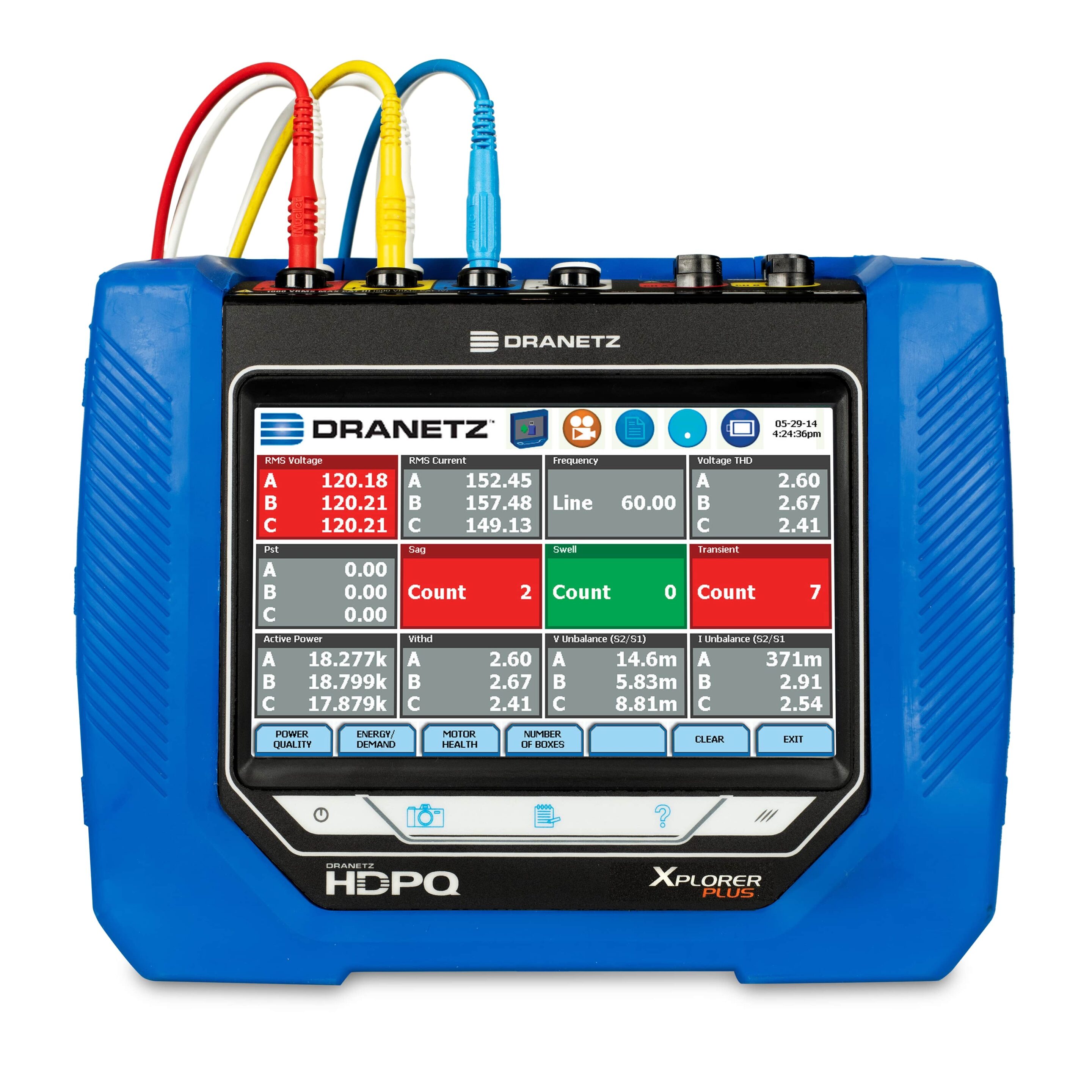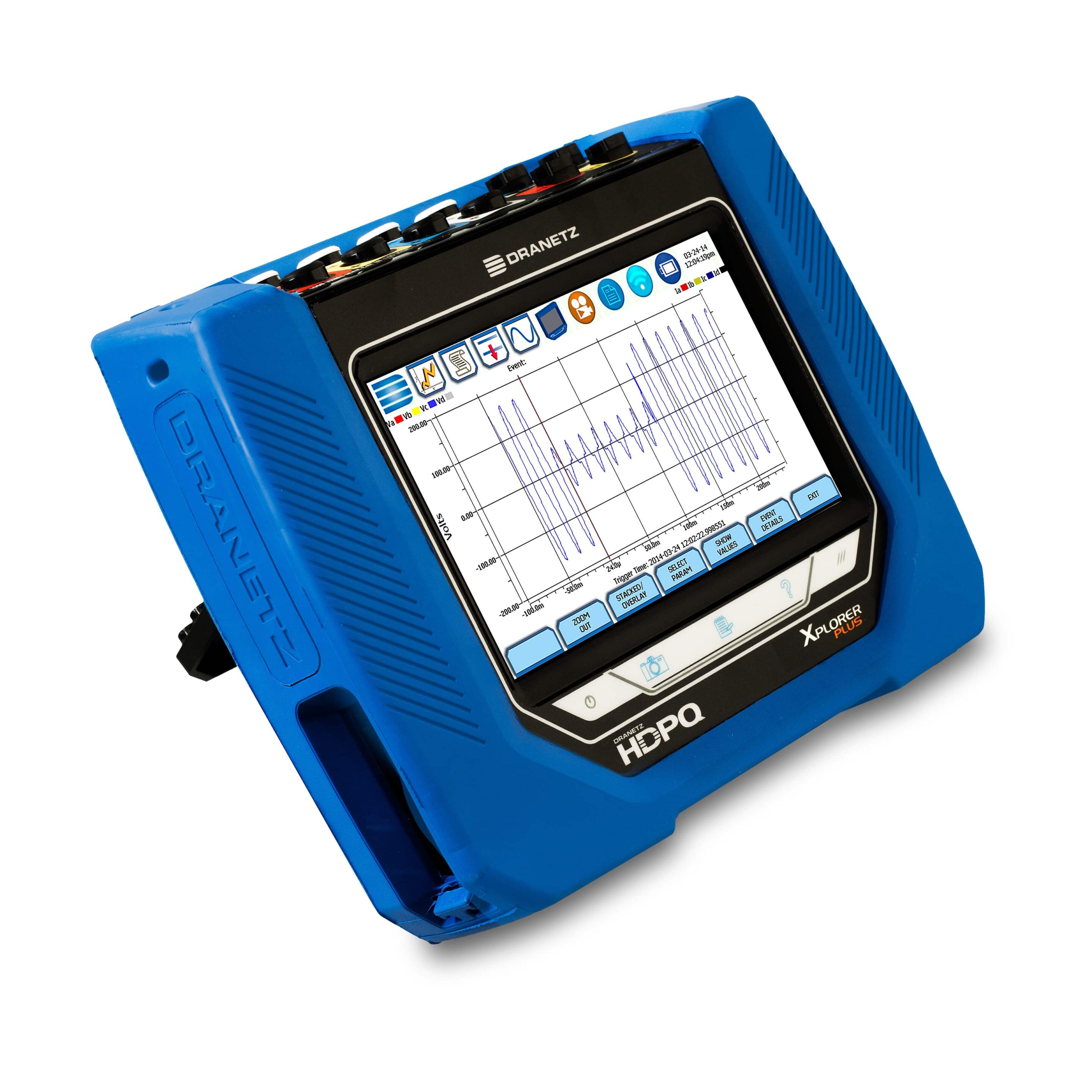 The Dranetz HDPQ® Xplorer Plus (portable) power quality analyzer represents the top of the line in the Dranetz HDPQ Plus family of products. It is a true hand-held portable instrument with a built in 7″, tablet-like touch LCD display and is simply the best PQ monitor available from Dranetz, or any other manufacturer! The Dranetz HDPQ Xplorer Plus includes all of the features of the Dranetz HDPQ Visa Plus and Guide Plus power quality instruments, but adds high speed transient capture capabilities to 1us so you’ll never miss an event!